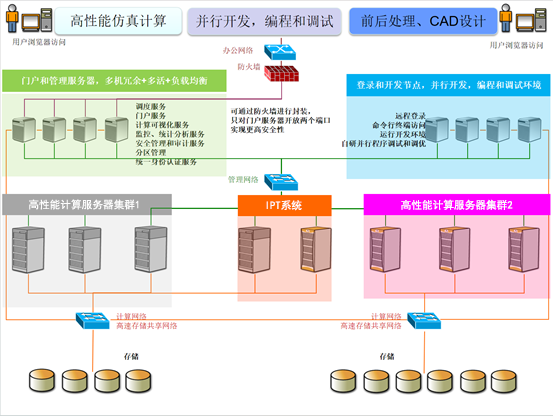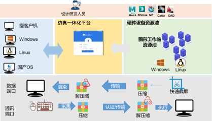結(jié)合數(shù)字化設(shè)計(jì)流程,將設(shè)計(jì)、仿真(計(jì)算、優(yōu)化、前后處理、CAD設(shè)計(jì))應(yīng)用集中到高性能計(jì)算系統(tǒng)上,確保項(xiàng)目涵蓋數(shù)字化設(shè)計(jì)的整個(gè)過(guò)程。為了保證易用性,高性能計(jì)算系統(tǒng)通過(guò)瀏覽器,用一個(gè)統(tǒng)一的門戶實(shí)現(xiàn):CAD設(shè)計(jì)和CAE前后處理等三維圖形應(yīng)用軟件的使用和調(diào)度管理、仿真類及優(yōu)化類應(yīng)用軟件的使用和調(diào)度管理,從而建設(shè)一個(gè)涵蓋設(shè)計(jì)、仿真、優(yōu)化、前后處理統(tǒng)一的綜合應(yīng)用服務(wù)平臺(tái),為設(shè)計(jì)師提供高效的計(jì)算、設(shè)計(jì)環(huán)境。