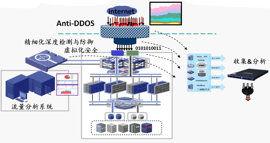 (1)在出口部署防火墻、IPS,流量清洗,流量分析系統(tǒng)